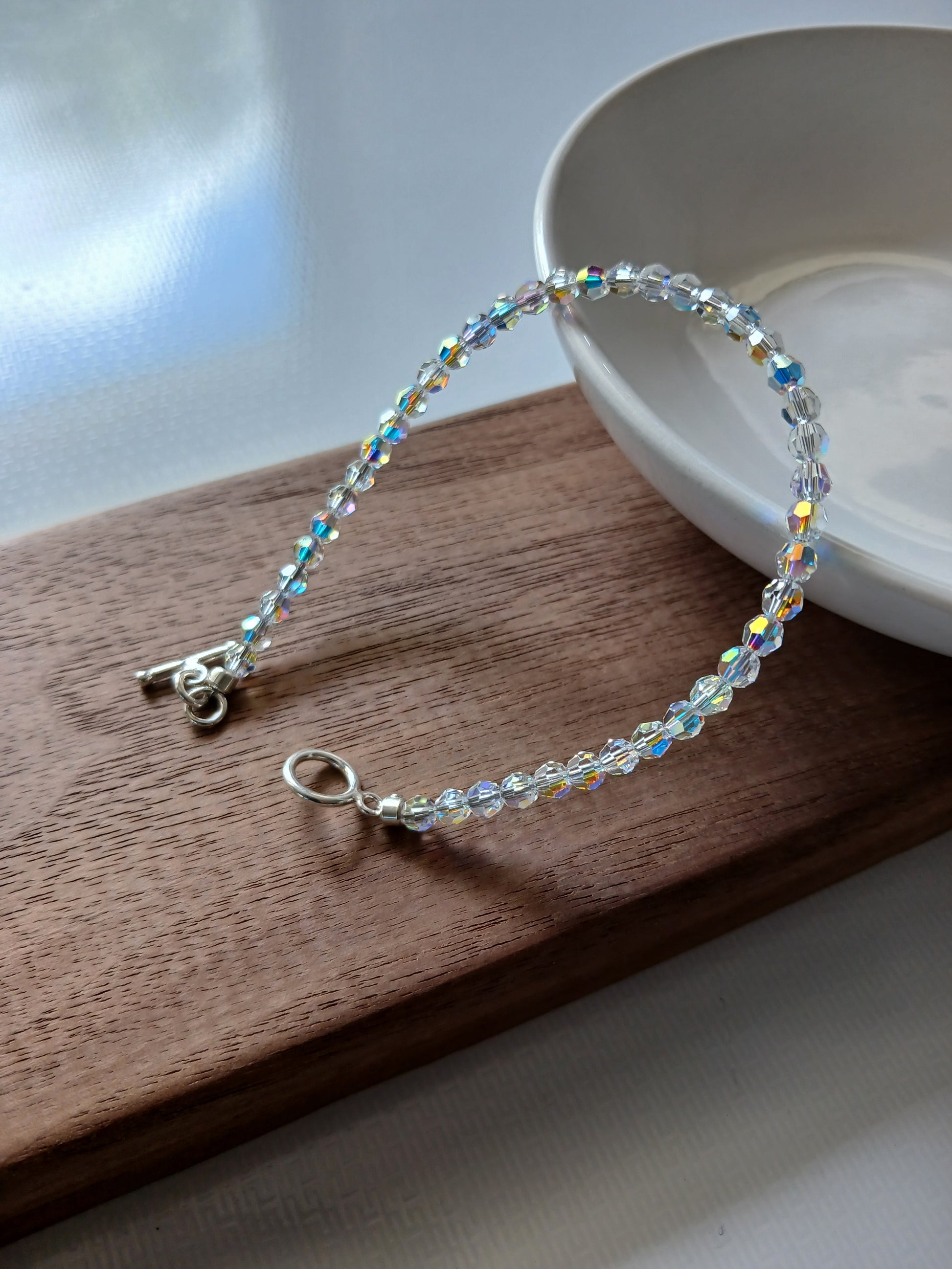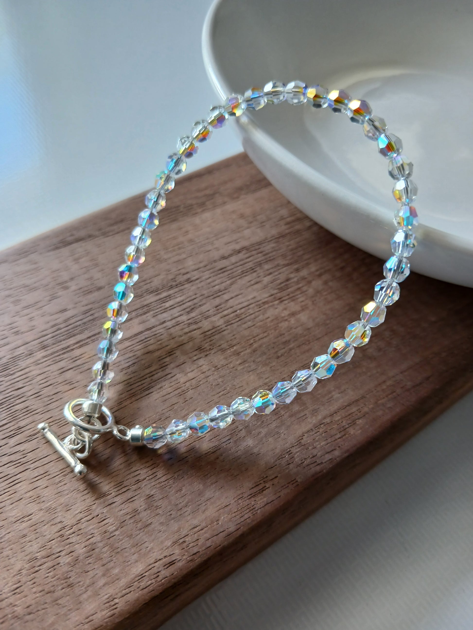 Made with Swarovski crystal 4mm beads and Stirling silver hook. It is approximately 20cm length.